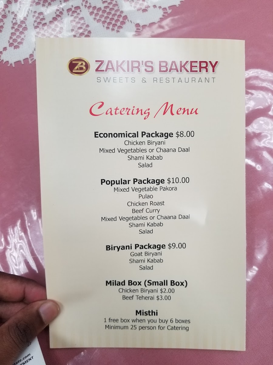 Zakir's Bakery Sweets & Restaurant Menu